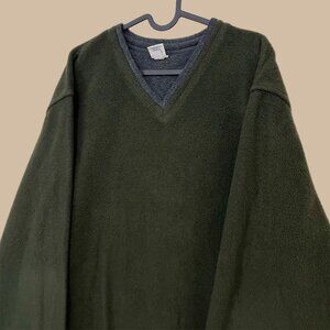 dark green essential basic y2k vneck fleece sweater skate grunge boyfriend