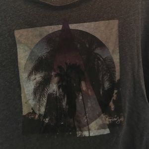 dark grey Roxy tee with beach design on front