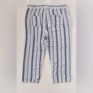 dash Women's Blue White Striped Linen Blend Pull On Pants Coastal Size Large