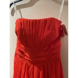 davids bridal, strapless crinkle chiffon red dress, size 2 NWT