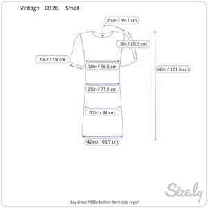Be aware that vintage sizes may vary from modern standard sizes. See the sizely chart in the product photos for full measurements. The measurements are the most accurate gauge of the garments size. chest, waist and hip measurements are taken laying flat and then doubled. all measurements are approximate. Vintage items are carefully inspected and I do my best to describe all flaws. but all vintage items may have unnoticed flaws and signs of wear from being preloved. Full measurements are listed so we do not accept returns for fit.