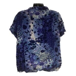 db Line Leopard & Floral Print Button Up Shirt (Size: 1X, Color: Blue/White)