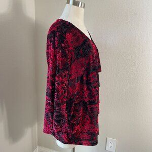 db established 1962 Womens Plus 2X Red Black Velvet Burnout Tiered Tunic Top