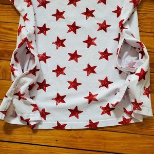 d&co Active White Tee With Red Stars, Pockets, and Side Slits - NWOT Sz L