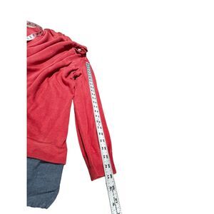 d&co Coral colored long sleeved light weight sweater, size 3X, with dark denim shirt look at the bottom.