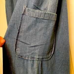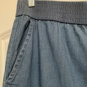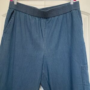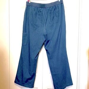 d&co. Wide Leg Cargo Pants Womens 1X Cotton chambray pull on Beach Flowey QVC