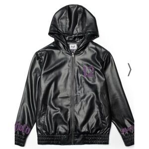 dcpl Vegan Leather Hoodie Jacket Streetwear Black Full Zip