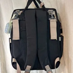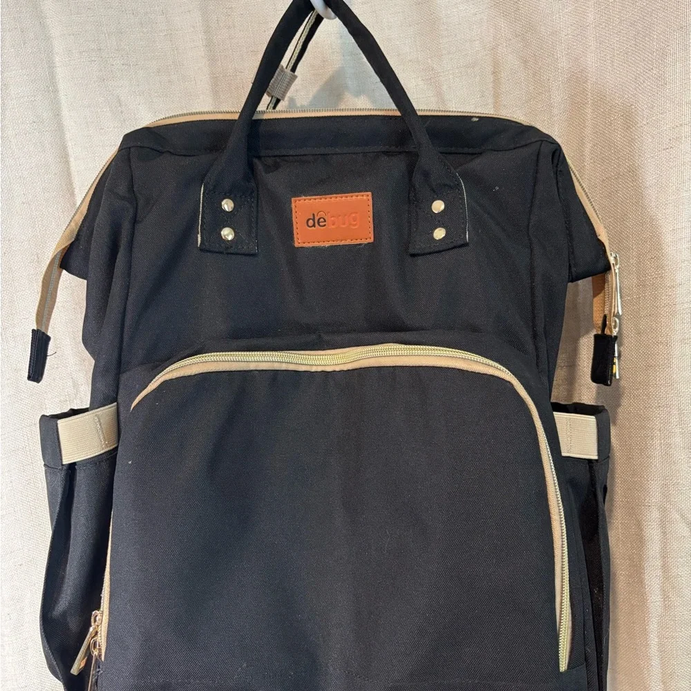 Stylish and durable, this diaper backpack in black and tan is perfect for everyday use with baby in tow. Featuring a sleek design, this bag offers ample space and comfort. Provides ample room and fits so many items!