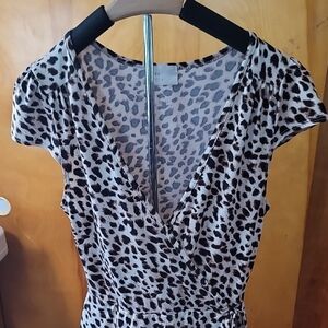 Embrace your wild side with this chic leopard print dress. Featuring a flattering V-neck and short sleeves, it's perfect for any occasion.