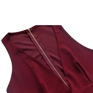 This is a showstopper! Maroon midi dress with a deep v-neck and open shoulders, exposed back zipper, and pockets at hip. Sexy and practical (yay pockets!), this dress will turn heads at homecoming, on a date, as a wedding guest, or just because! EUC.