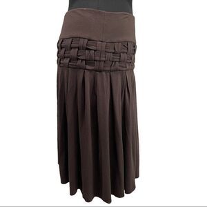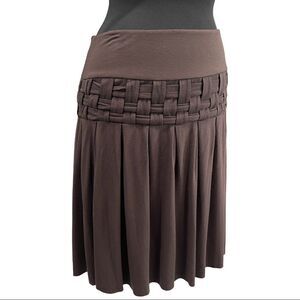 deletta Brown Jersey Knit Pleated Skirt Sz M