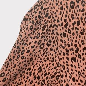 Democracy Elbow Puff Sleeve Keyhole Neck Dotimal Animal Print Top