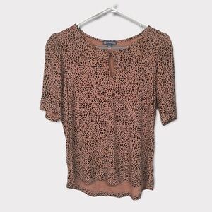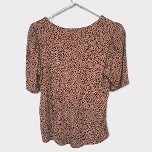 democracy Elbow Puff Sleeve Keyhole Neck Dotimal Animal Print Top, Cedar, Small