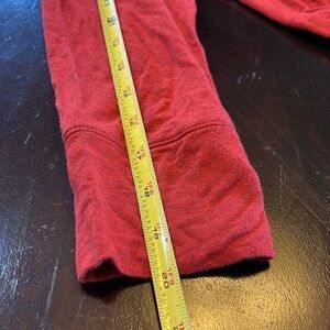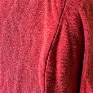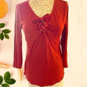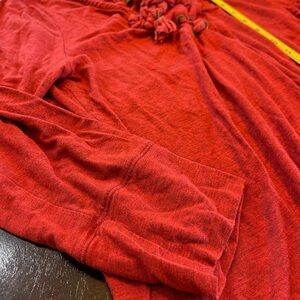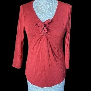 Good condition Democracy Shirt in a warm reddish, orange and black color. V neck ties up the front with thick chord.