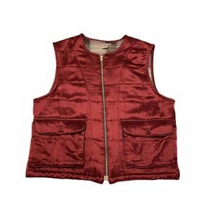 democracy Women satin Down Quilted Puffer Vest Jacket sz M red Full zipper