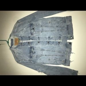 This is a vintage denim jacket I made myself. This jacket is a medium and hasn’t been worn you can’t find work like this anywhere else . No smell . If you Would like to buy and think the price is to high make an offer . If interrelated contact me.
