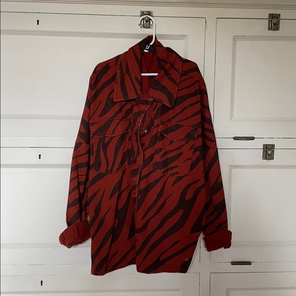 ZARA maroon and black zebra print denim jacket