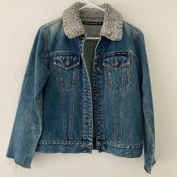 DNKY jean jacket. worn a few times perfect condition. 2 pockets on chest area plus adjustable sizing in the back. size small fits xs too. I like to wear it with a sweater or thin hoodie underneath:)