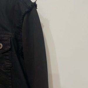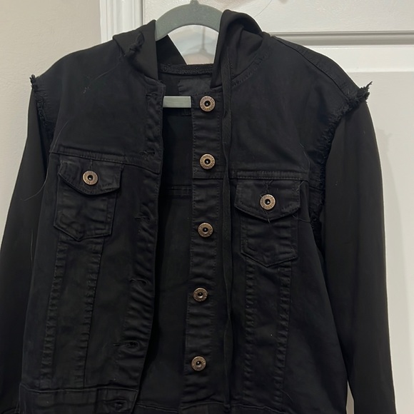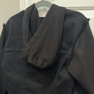 black denim with sweatshirt material for sleeves and hood