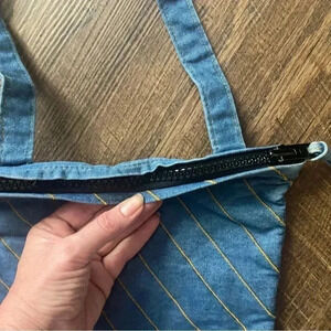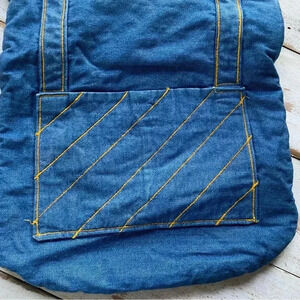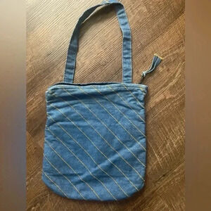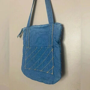 denim shoulder bag, jean tote bag artisan 70s style purse gold stitching boho