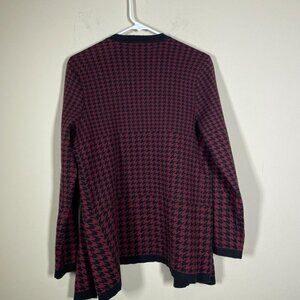 dennis basso Women's Red Black Open Cardigan Sweater M Cotton Blend!