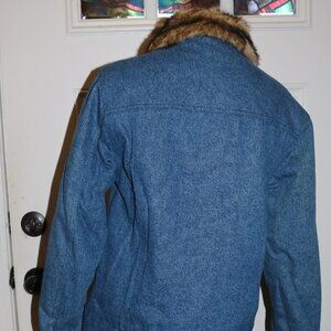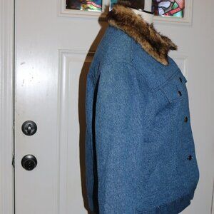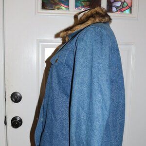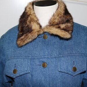dennis basso denim coat with faux fur trim size small