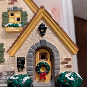Illuminate your home with this charming holiday village house. Featuring a delightful design with green shutters and a festive wreath, this piece adds warmth to any holiday decor. Perfect for creating a cozy, inviting atmosphere.