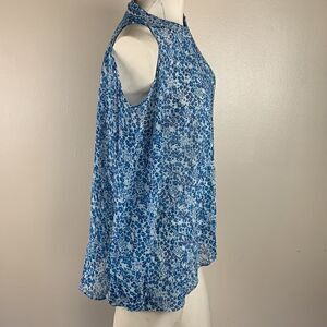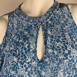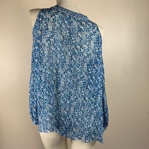 derek lam 10 crosby floral cold shoulder blouse top 12 sheer silk blue keyhole