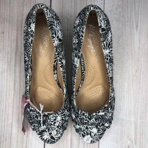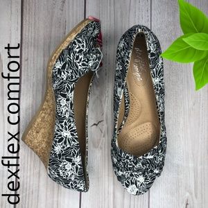 Floral Open Toe Cork Wedge Sandals by Dexflex Comfort