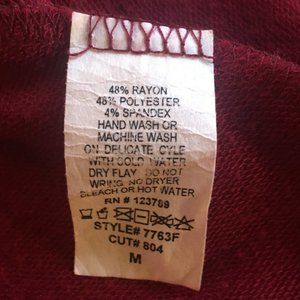 "dina be" deep red tunic length long sleeve dress. Gently used.