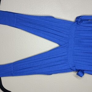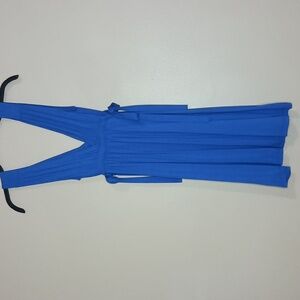 dina-be Beautiful Royal Blue Soft and Flowy Deep Vee Neck Dress with Ties on Both Sides. Excellent Condition.