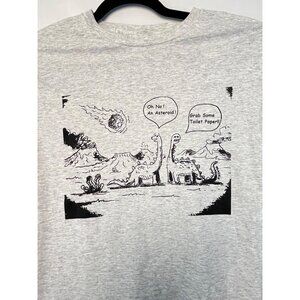Absurd humor. This small cotton blend shirt features a quirky dinosaur print. Ideal for fun-loving individuals, it's a comfortable and lighthearted addition to your wardrobe.