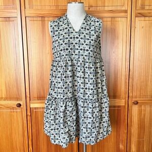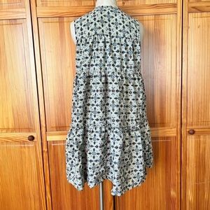 dip Large Linen Green Ditzy Floral Sleeveless Ruffle Tiered Prairie Boho Dress