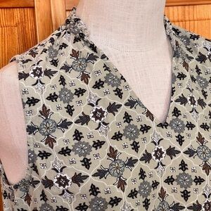 Dip dress, floral sleeveless dress, green tiered dress, babydoll style, boho prairiecore, baby shower dress, summer casual, linen blend dress, bump friendly outfit, V-neck floral dress, cottagecore, linen, spring dress, casual dress