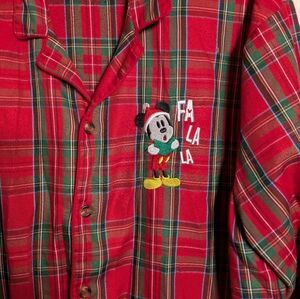 disney Store Size Large Red Plaid Men's Shirt Pre-owned Mickey Mouse