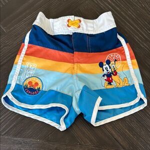 disney swimsuit, swim trunks, shorts, mickey, blue, orange, size 2, summer