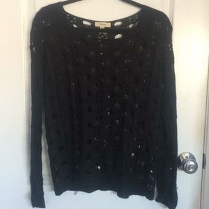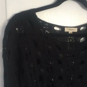 super cute and trendy black sweater with holes throughout. looks super cute with a colored cami/bralette underneath or even a neutral thermal if it’s colder! tag says s/m but could fit an xs if you want it oversized! only worn once or twice. reasonable offers always considered!