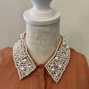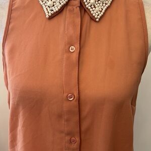 dizzy lizzy apricot sleeveless blouse with faux pearl collar Size S