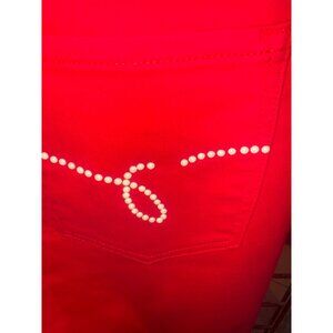 d.jeans Red Mid-Rise Skinny Jeans With Pearl Accents Size 10 Stretch Slimming