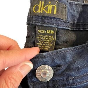 dkin 18W dark denim stretch jeans with back pocket rhinestone embellishment