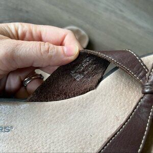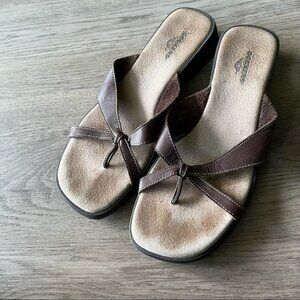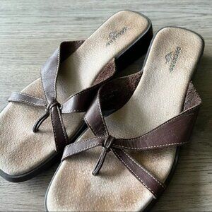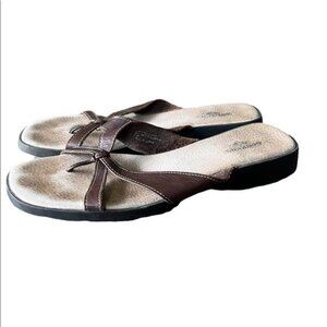 dockers Women Strappy Flip Flops Square Toe Brown Leather Upper Toe Post Sz 8.5