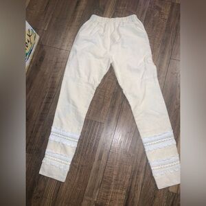 Gently used they have a faded cotton boho look with lace details on bottom of pants size small no size tag retail for over 300$