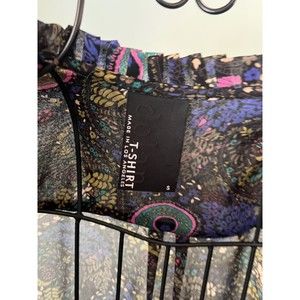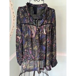 dolan Floral Chiffon Basic Tunic Blouse Women Size S 1/4 Button Up See Through