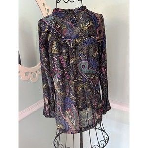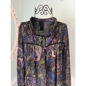 dolan Floral Chiffon Basic Tunic Blouse Women Size S 1/4 Button Up See Through. Condition is Pre-owned. Shipped with USPS Ground Advantage.
