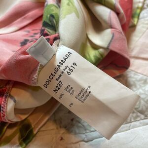 dolce and gabbana rare d&g pink and white floral silk collared button up shirt size 42 which is equivalent to around a medium but see measurements. :) excellent condition aside from the tag threads coming loose on the one side.