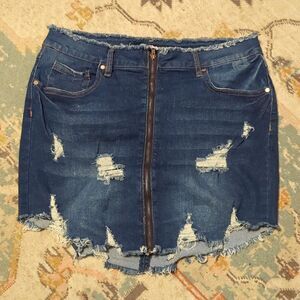 dollhouse Women's Size distressed stretchy Mini Skirt with Full Front Zipper