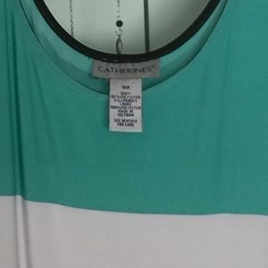 $7 flash sale (24 hr) Cold shoulder Catherine's Striped maxi dress in colors of navy, teal and white. Plus size 0X. Worn once or twice. Necklace not included. Need a matching accessory or need help styling? Comment below and I can share selections to your closet to choose from and create the perfect discounted bundle offer personalized just for you.