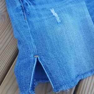 Perfect length denim shorts with 6.5in inseam. Very stretchy material with a split seam down each side. EUC, with 5 pockets and a double front button.