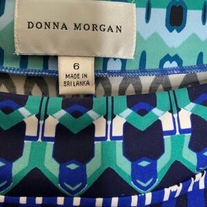 Donna Morgan blue multicolored shift dress. 3/4 sleeves. Wide neckline. Excellent condition.