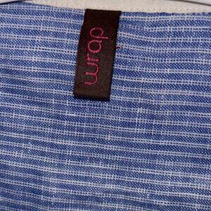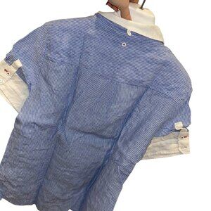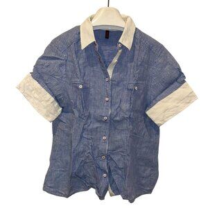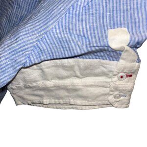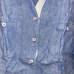 dorm blue white LINEN stripe red contrast detail button down short sleeve top M